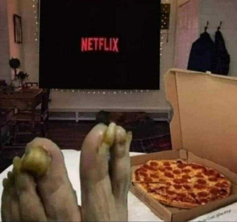 Netflix og pizza levert på døra... Velbekomme.... Kommer du...?
